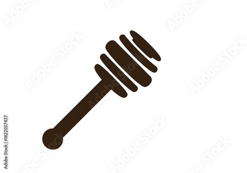 A simple brown honey dipper with a rounded handle against a plain white background space