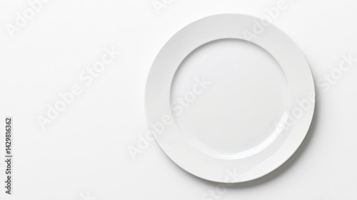 A simple, elegant white plate positioned on a minimalistic surface, highlighting its clean design and potential for culinary presentation.