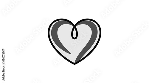 A simple gray heart with a black outline and a curled line in the center on a white background