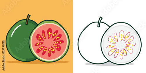 illustration, isolated, graphic, healthy, set, fruit, food, tropical, guava, vignetting, design, sweet, vector, icon, fresh, simple, organic, health, exotic, green, ripe, plant, symbol, vitamin, juicy, background, cut, white, leaf, juice, half, slice, line, piece, eating, tree branch, package, whole, cartoon, drawing, nature, art, education, collection