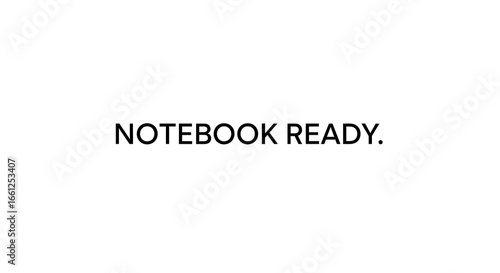 A simple white background with the words notebook ready in black color with a period at the end