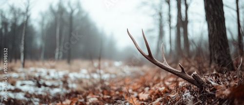 antler, autumn, leaf, misty, forest, mystery, wilderness, nature, solitude, landscape, serene, solitary, environment, fallen, natural, wild, wood, scene, foliage, calm, exploration, discovery, ground, earth, stillness, atmosphere, chill, melancholy, rustic, peaceful, organic, hidden, forest floor, morning, seasonal, outdoors, quiet, calmness, earthy, element, scenic, wildlife