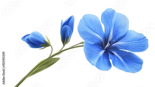 flower, flax, blue, blossom, bloom, bud, stem, flower petals, plant, botanical, nature, flora, delicate, vibrant, colours, spring, summer, beauty, elegance, serenity, calmness, pastel, soft, light, bright, macro, closeup, detail, texture, vein, leaf, green, isolated, white, background, single, art, image, photo, illustration, design