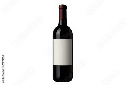 A single bottle of red wine with a blank white label on a transparent background, concept for wine label design, branding, and packaging