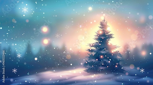 A Single Christmas Tree Glowing in a Snowy Winter Landscape