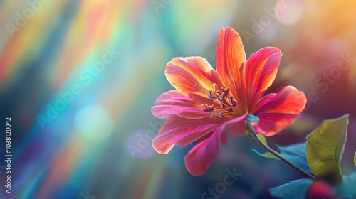 flower, bloom, red, pink, orange, yellow, green, light, sunlight, sun, nature, flora, botany, macro, closeup, garden, soft, delicate, colourful, high-coloured, vibrant, beautiful, fresh, bright, summer, spring, day, morning, outdoors, background, blur, bokeh, abstract, pastel, artistic, art, photo, floral, blossom