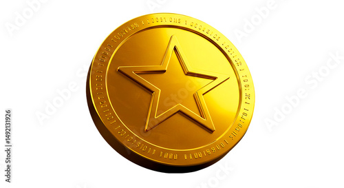A single gold coin with a star in the center on a black background in a studio shot style image