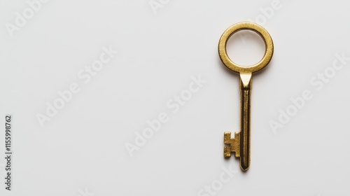 single, gold, key, placed, white, isolated, background