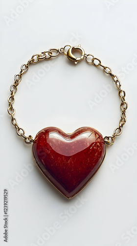 A single heart-shaped charm bracelet against pure white background