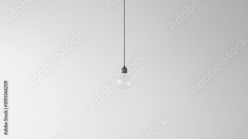 A single incandescent bulb, hanging from a straight cord, with a stark white background providing contrast