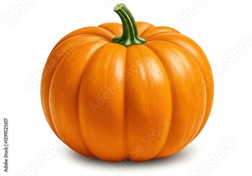 A single orange pumpkin with a green stem isolated on a white background in a studio shot view