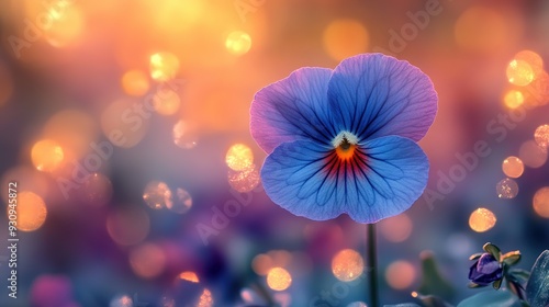 A Single Pansy with Bokeh Lights in a Soft Sunset Glow