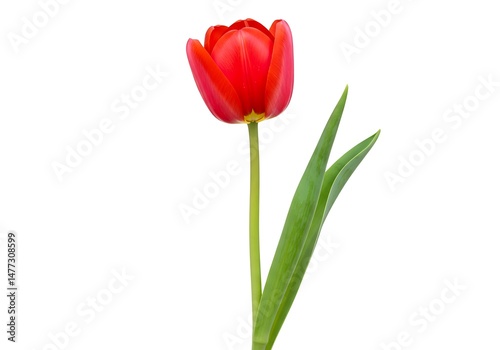 tulip, red, flower, stem, leaf, white, background, flora, bloom, plant, isolated, closeup, floral, spring, single, macro, nature, vibrant, beauty, fresh, bright, botany, garden