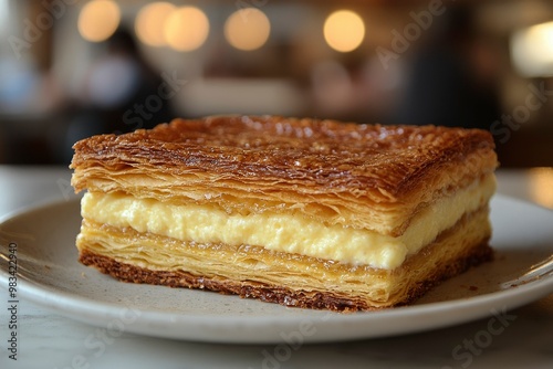 A Single Slice of Puff Pastry Dessert with Creamy Filling