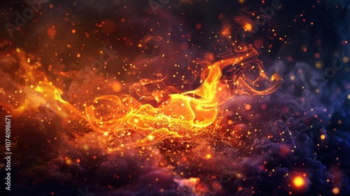 A single small flame transforms into a raging inferno fueled by mystical sparks that seem to have a life of their own.