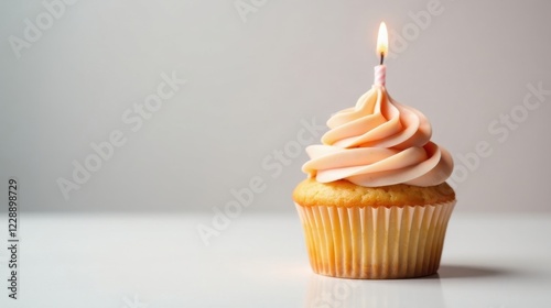 cupcake, frosting, candle, dessert, sweet, birthday, celebration, party, delicious, tasty, deliciously, treat, food, cake, pastry, confectionery, appetising, single, light pink, vanilla
