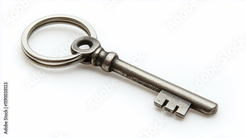 key, isolated, metal, lock, white, security, old, silver, steel, antique, object, open, door, metallic, home, key, ring, vintage, house, unlock, unlocking, aged, closeup, access, white background