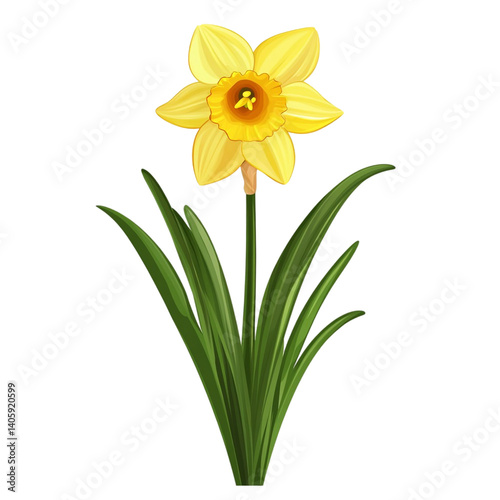 daffodil, flower, yellow, blossom, spring, bloom, plant, nature, botany, floral, illustration, green, leaf, stem, graphic, design, botanical, art, isolated, background, single, vibrant, colours, springtime, narcissus, wildflower, garden, bright, fresh, beauty, elegant, delicate, wildlife, flora, image, artwork, drawing, digital
