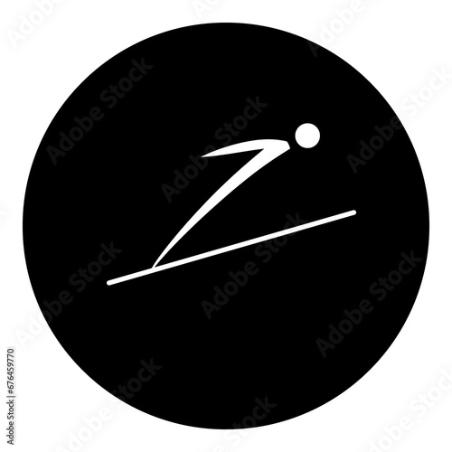 A Ski jumping symbol in the center. Isolated white symbol in black circle. Illustration on transparent background