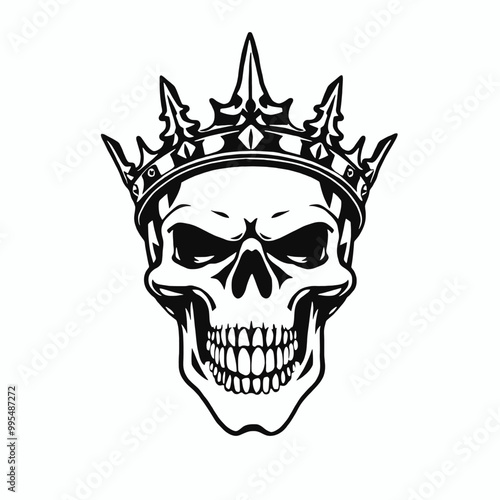 A skull, wearing a crown, expressing a grim determination, conveying a powerful and slightly menacing mood