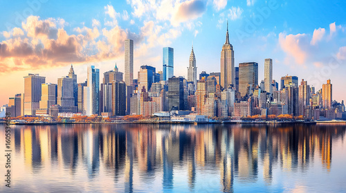 A skyline view of New York City, showcasing the cityscape of Manhattan in the USA.