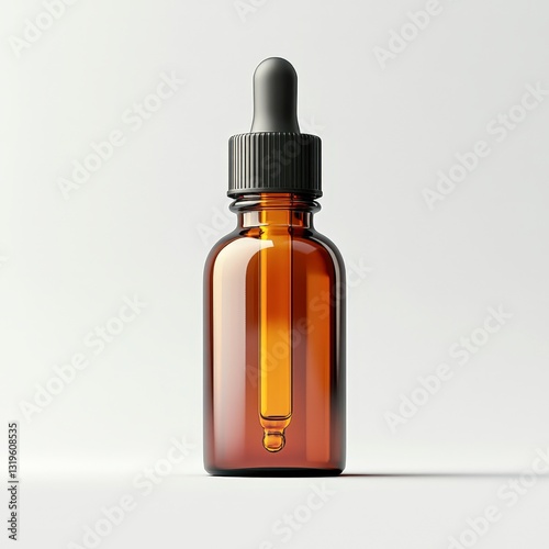 A sleek amber glass dropper bottle stands against a clean background, ideal for packaging essential oils, serums, or skincare products, enhancing professional branding and product presentation,