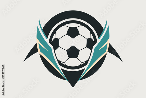 soccer, ball, minimalist, illustration, design, sport, football, art, graphic, dynamic, modern, sleek, creative, black, white, teal, circle, shape, pattern, simple, decorative, artwork, vector, aesthetic, playful, motion, agility, game, activity, competition, teamwork, kicking, goal, player, fitness, field, style, emblem, logotype, branding, culture, youth, recreation, entertainment, turf, sportsmanship, passion, skill