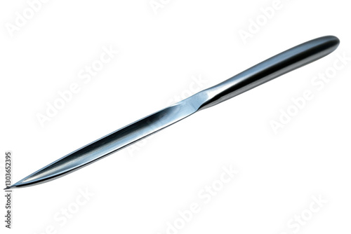 A sleek and shiny surgical scalpel resting on a pristine white surface in a serene workspace setting isolated on transparent background