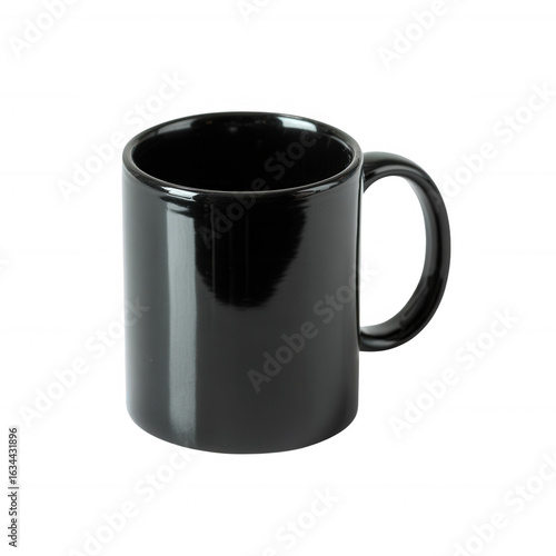 A sleek black ceramic mug featuring a smooth surface and rounded handle, perfect for enjoying hot beverages. Ideal for both home and office use.