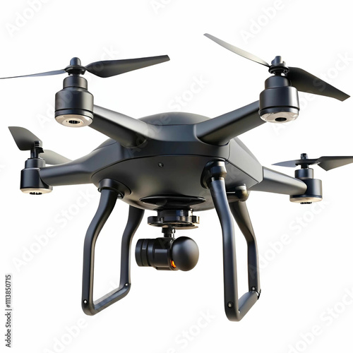 A sleek black drone hovering mid-air, showcasing its compact design,