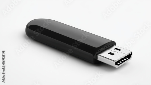 A sleek black USB flash drive lying on a light surface, showcasing its compact design and USB connector.
