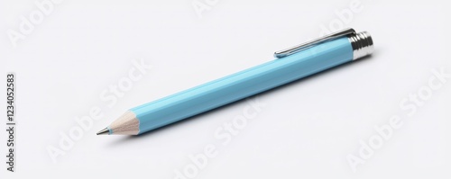 A sleek blue pencil rests on a light background, showcasing its simple design and practicality for writing or drawing.