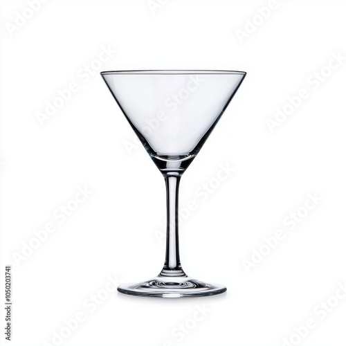 A sleek, clear martini glass elegantly displayed against a white background, ideal for showcasing refined beverages.