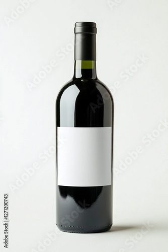 A sleek, dark glass bottle stands upright against a minimalist backdrop, featuring a blank white label ready for custom designs or personal touches to enhance any occasion