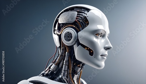 A sleek, futuristic artificial intelligence humanoid robot, primarily white and metallic in color, with a highly detailed and exposed mechanical structure.