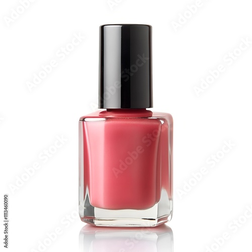 A sleek glass bottle filled with vibrant pink nail polish captures the essence of beauty and elegance, making it perfect for self-care routines or special occasions
