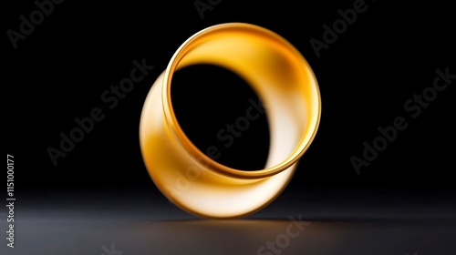 A sleek, golden ring elegantly displayed against a dark background, showcasing its smooth curves and reflective surface.