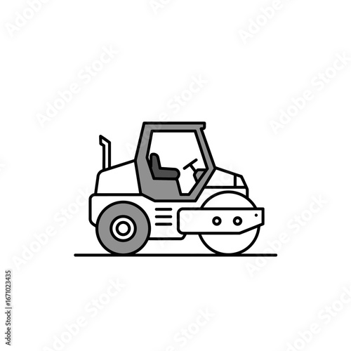 A sleek, minimalist vector illustration of a road roller, essential heavy machinery for compacting surfaces during modern infrastructure development and construction projects.