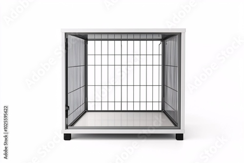 A sleek mockup featuring a kennel on a pristine white backdrop, ideal for presenting pet care branding or promotional designs for graphic artists.