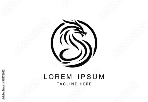 dragon, logotype, monochrome, vector, branding, modern, design, emblem, symbol, mythical, creative, artistry, elegant, dynamic, minimalist, black-and-white, sleek, sophisticated, circular, motion, stylised, bold, distinctive, timeless, fantasy, rebirth, power, effectiveness, simplicity, aesthetic, culture, mystical, forever, trendy, posh, business, image, fashionable, polished