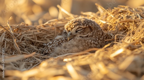owl, sleeping, nest, straw, nature, wildlife, bird, peaceful, environment, habitat, animal, cute, resting, feather, nocturnal, eye, small, serene, cosy, rural, landscape, calmness, beauty, brown, pattern, soft, natural, calm, quiet, wild, young, species, earth, warm, gold, dusk, twilight, fauna, avian, perch, nestling, charme, round, adorable, sleepy, innocence