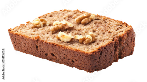 A slice of banana bread with walnuts, Transparent background, PNG file