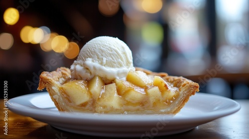 apple, pie, ice cream, dessert, sweet, food, bakery, pastry, delicious, deliciously, tasty, treat, autumn, fall, winter, holiday, celebration, slice, portion, plate, vanilla, creamy, crunchy, warm, cold, eatery, cafes, dinner, lunch, snack, cooking, baking, homemade, hand-made, sugar, fruit, filling, crust, gold, brown, white, scoop, simple, single