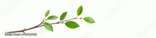 A small and delicate branch with leaves isolated on white background, solo, stem