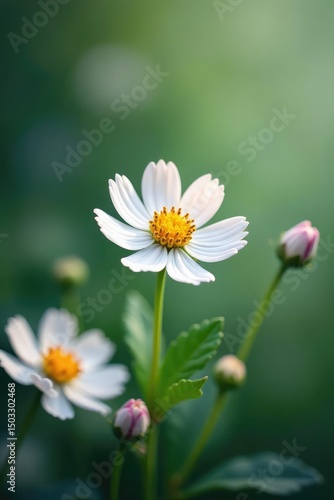 A small, delicate flower nestled in a bed of white, peaceful, delicate, flower