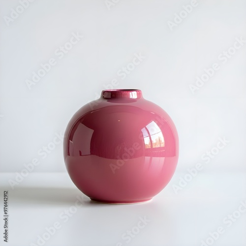 A small, glossy pink flower vase with a round body, placed on a white background.