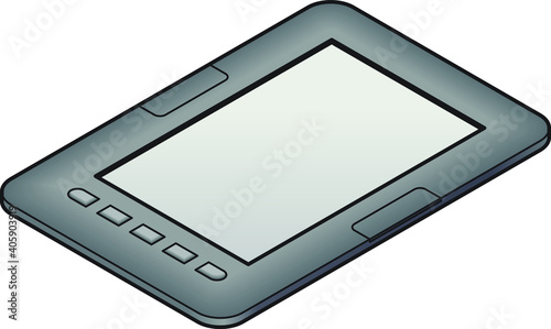 A small gray ebook reader.