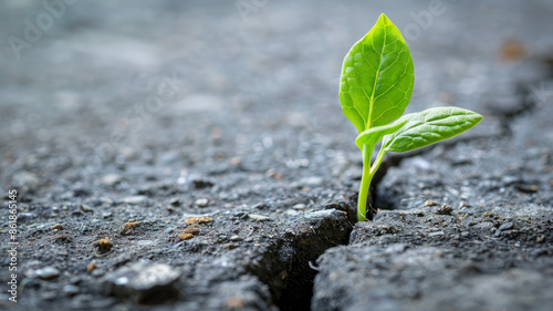 breakthrough, determination, hope, perseverance, potential, progress, strength, earth, life, growth, survival, regeneration, outdoors, crack, germ bud, green, environment, nature, dirtied, plant, germinating, concrete, resilience, tenacity
