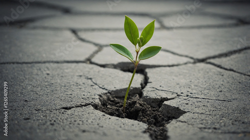 A small green plant sprouting through a cracked concrete surface symbolizing resilience growth hope and nature’s perseverance against adversity and harsh environments