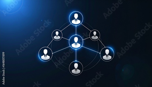 A small organizational chart style with people icons spaced at a moderate distance and connected by lines on a dark ton background.